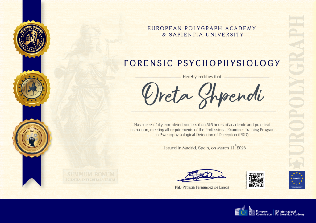 The above named has successfully complete following training program: Forensic Psychophysiology Polygraph Course