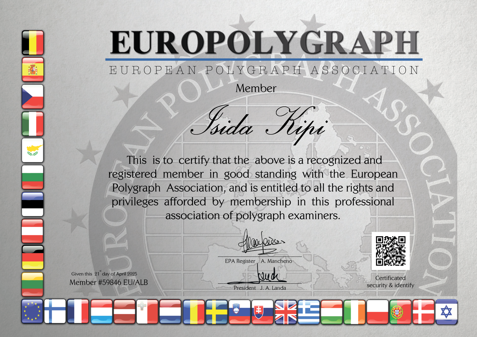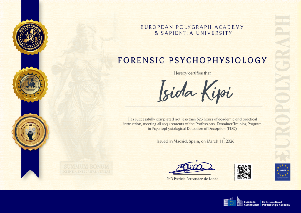The above named has successfully complete following training program: Forensic Psychophysiology Polygraph Course