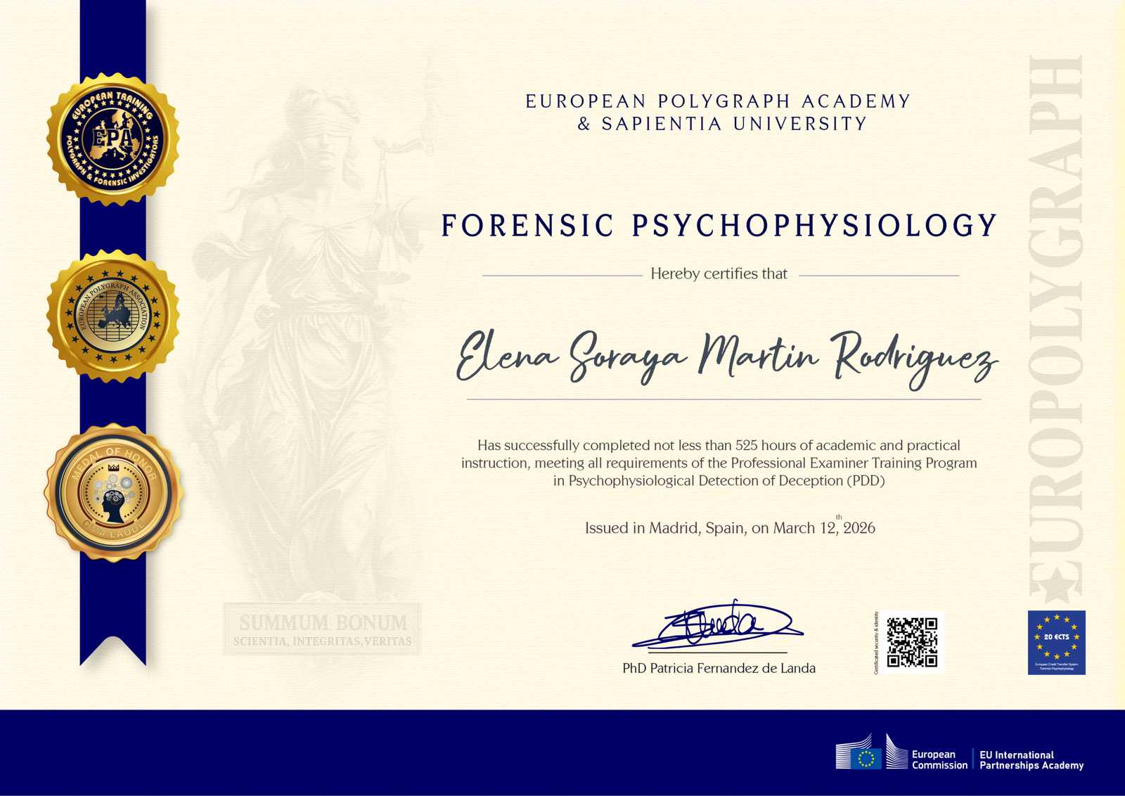 The above named has successfully complete following training program: Forensic Psychophysiology Polygraph Course