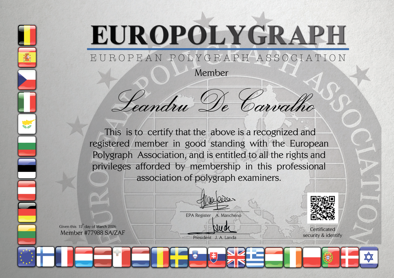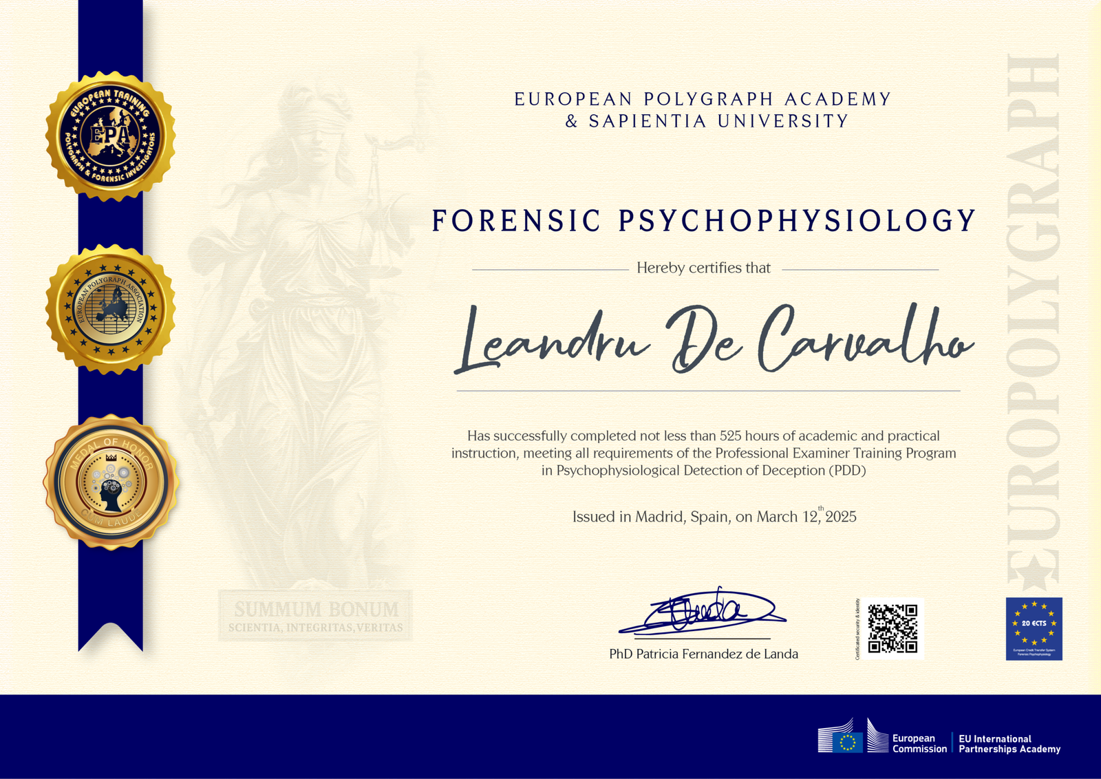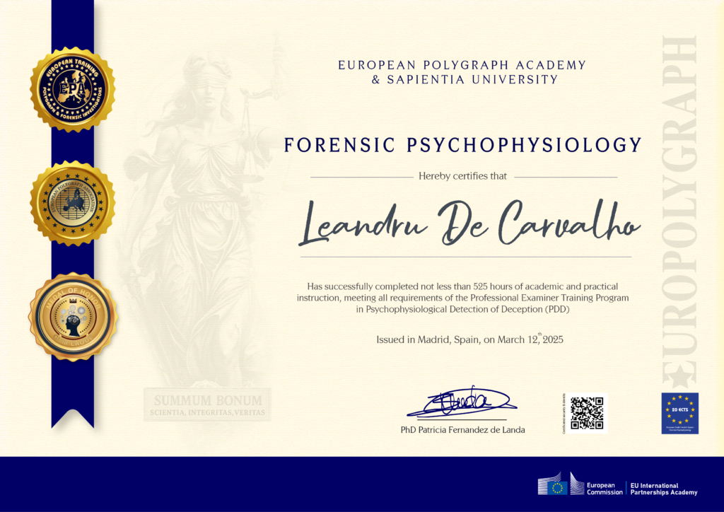 The above named has successfully complete following training program: Forensic Psychophysiology Polygraph Course
